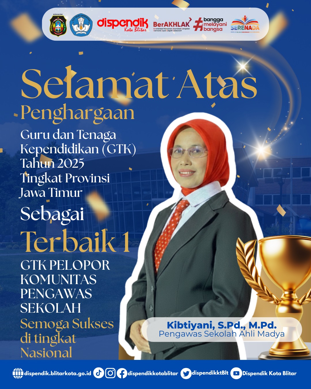 Terbaik 1 Kategori GTK Pelopor Komunitas Pengawas Sekolah (KIBTIYANI, S.Pd., M.Pd. - Pengawas Sekolah Ahli Madya)